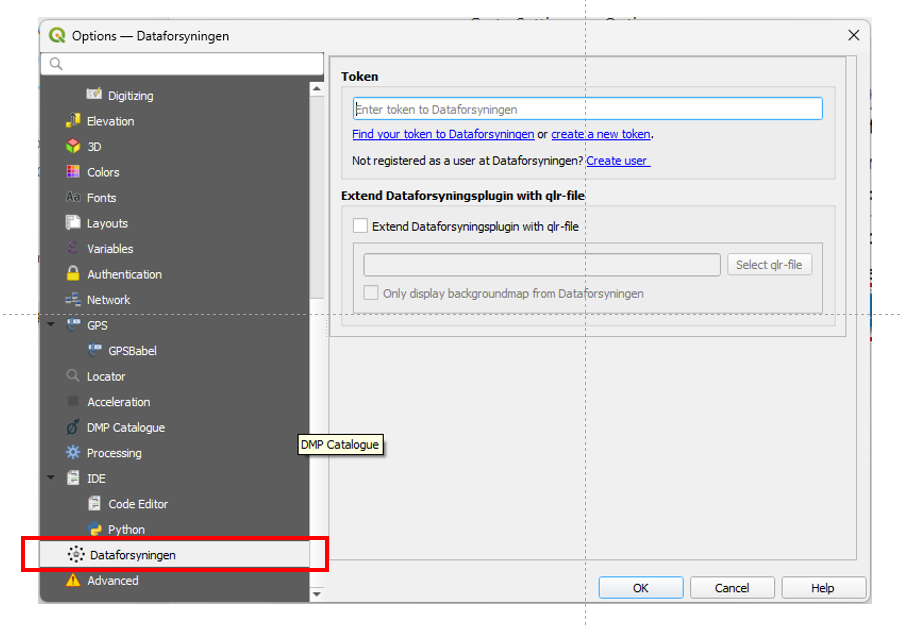 go to dataforsyning.dk and create and copy a token as described in Creating a token on dataforsyning.